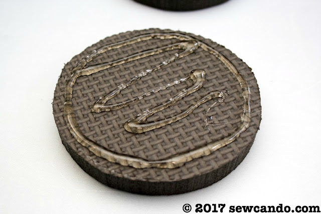 Add a bunch of hot glue to attach them to the wood bottoms:
