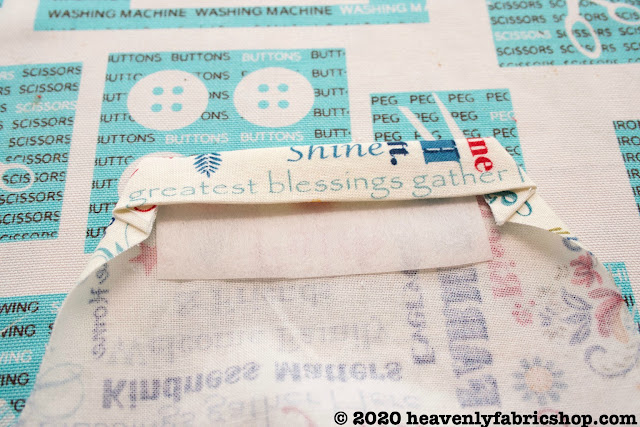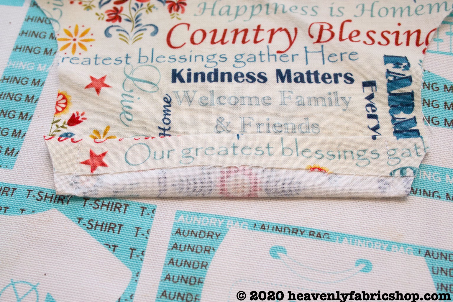 For the snap up bottom, fold the end 1/4 in over towards the wrong side of the fabric and press.