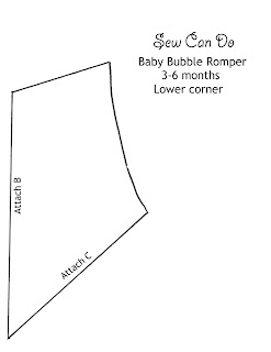 Take paper part A: from each corner, measure inward 2 1/2 inches and down 3 inches and make a "J" shape on either side. If doing a much smaller or larger size, (like an preemie infant or larger toddler) add or subtract a 1/2 inch, or more, to both these measurements. This style is pretty forgiving since it gets gathered at the end, so it's ok if it's not exact.