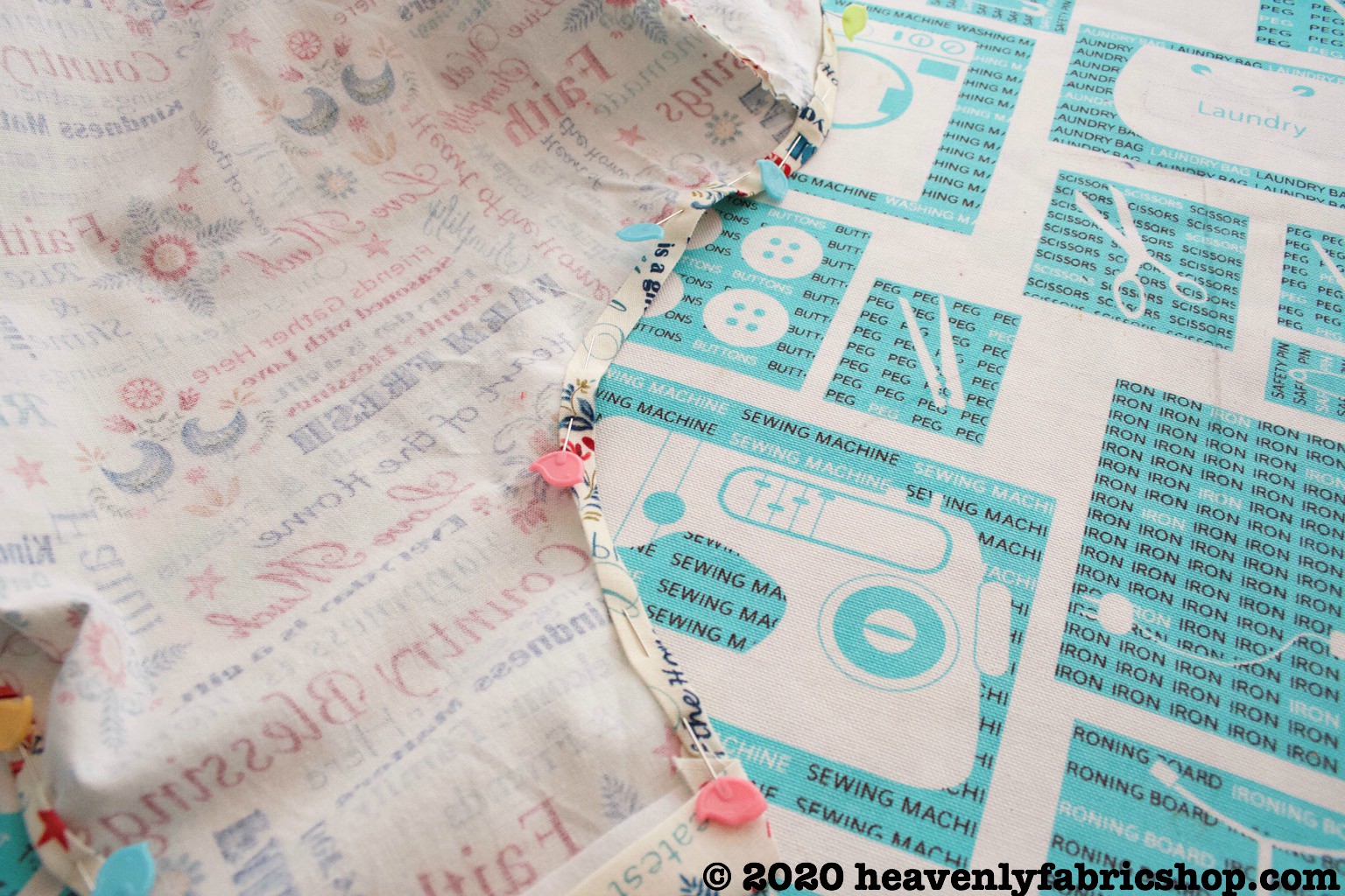 - Notions: iron, disappearing marker, pins, rotary cutter/shears, ruler, measuring tape, safety pin, matching thread, pencil