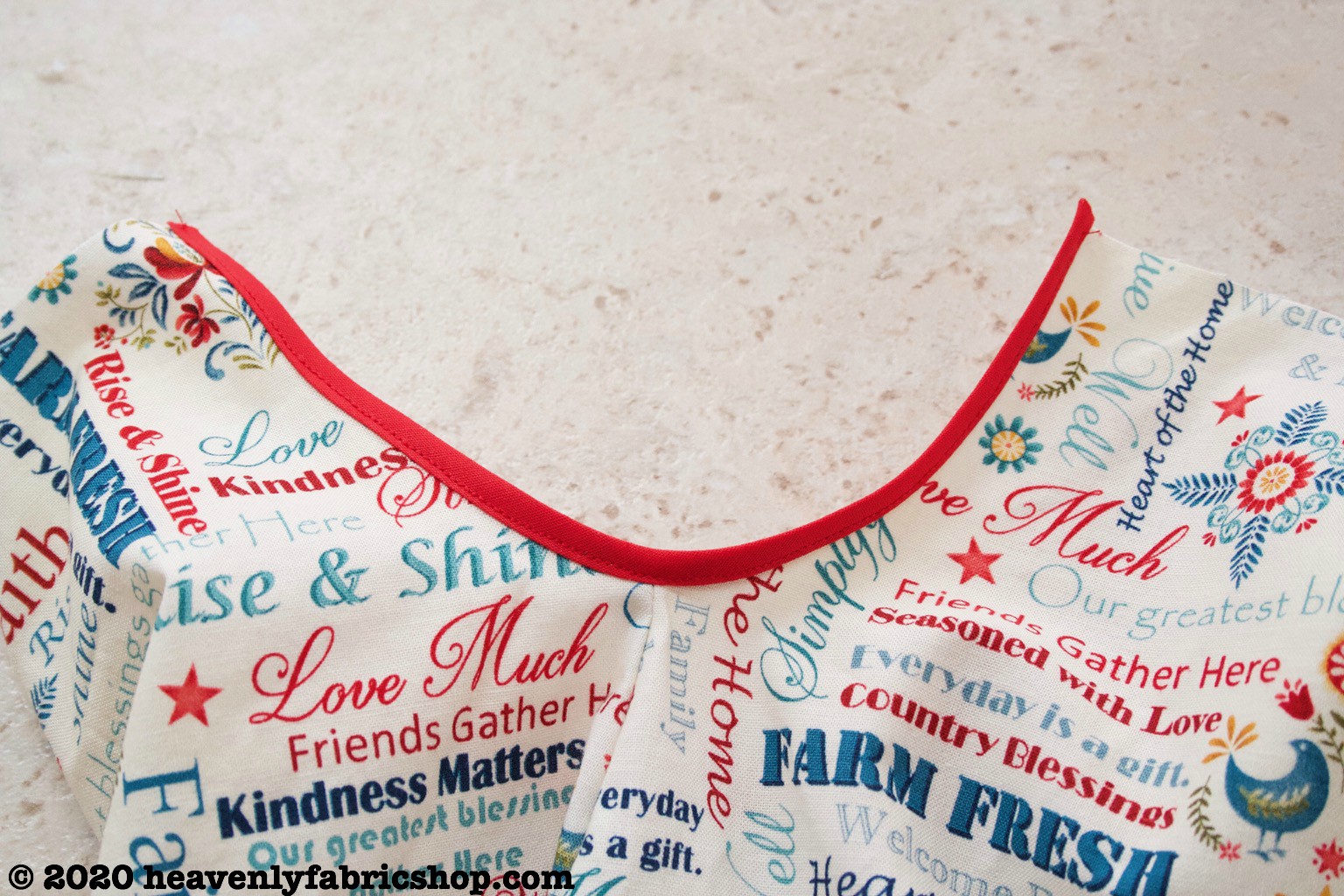 Create the neck casing by folding the top raw edge over to the wrong side of the fabric by 1/4in and pressing.