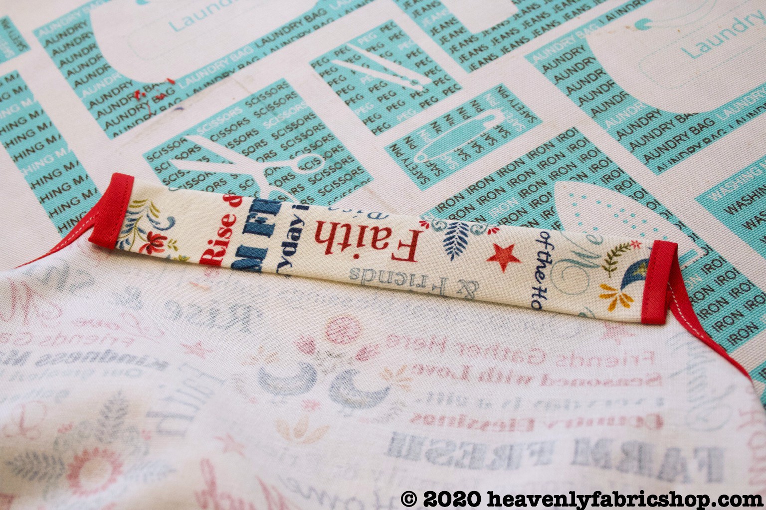 Now fold that bit up 1/2in toward the right side of the fabric and press. Stitch down 1/2 inch inward on either side. Clip the raw corners down and fold right side out.