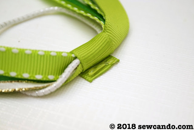 Then glue on the Happy Saint Patrick's Day button over the seam and the hair band is good to go: