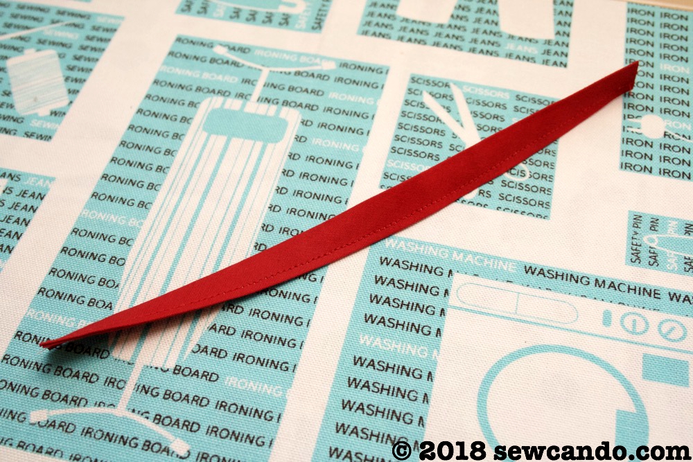 Fold cuff down on the outside, just shy of the seam. If using bias tape, stitch open side closed. Fold bias tape in half and stitch it to the inside of the stocking cuff by the seam.