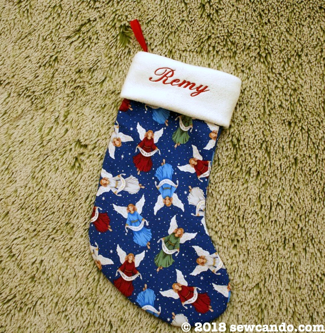 Having a classic stocking works great for all ages and using this vibrant angel print and adding a plush cuff makes it feel elegant.