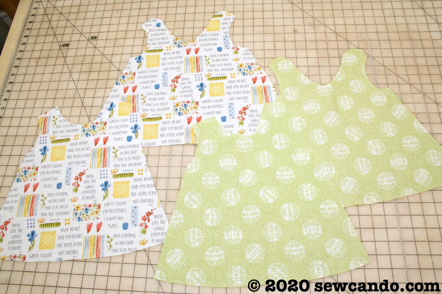 It works great with woven cottons like our many Faith Fabrics, as well as corduroy, minky or lycra knit. The dress also uses very little fabric, so it's an inexpensive project too.