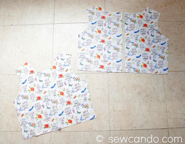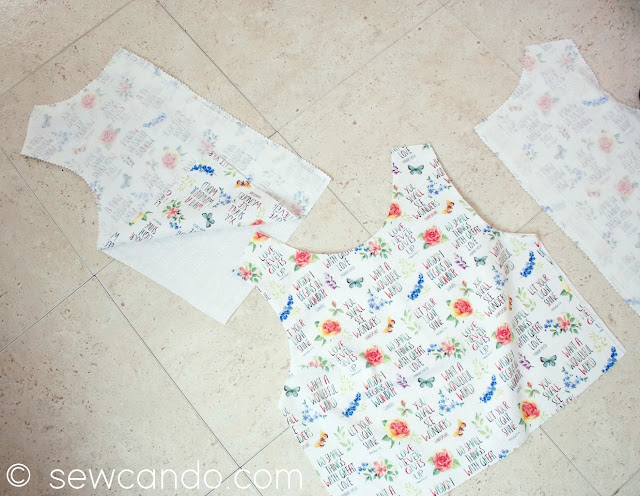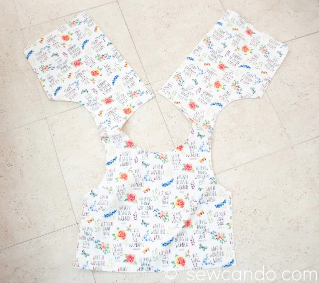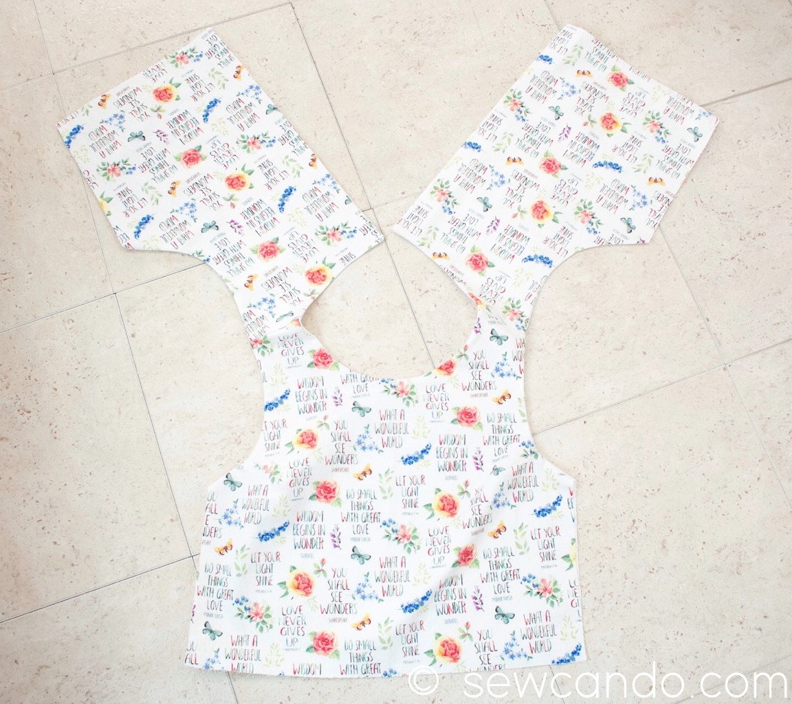 Turn the front bodice piece right side out and press around the seam to get them nice and flat. Insert the shoulder sections into each of the shoulder sections of the back bodice pieces, matching up the fabrics and seams.