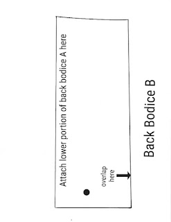 Overlap the back center of the bodice by 1 inch and baste layers together along the bottom as shown. Mark the bodice front and back centers. Set aside.