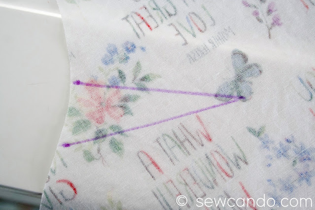 If darts are needed, this is the starting step. If not, just jump to the next one. On each side of the bodice, the dart markings form a triangle. Fold to match up the two points along the arm area to meet (right sides coming together).
