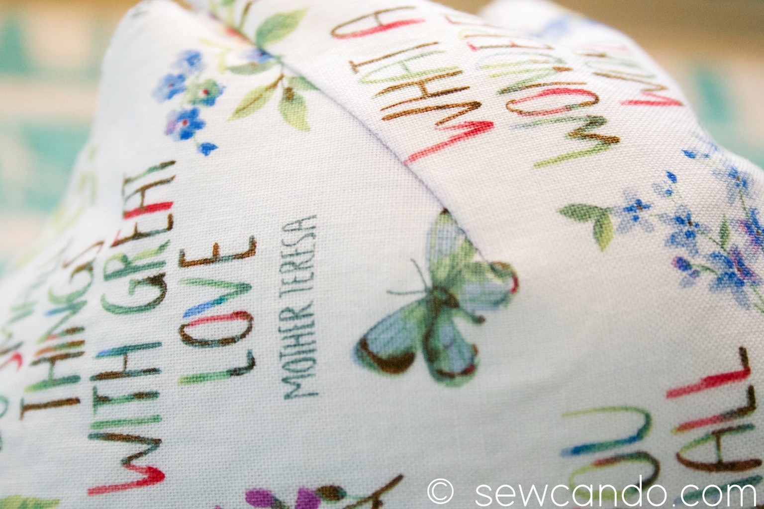 Do this all the way around, careful to keep the string in between the stitching since that needs to be able to slide.