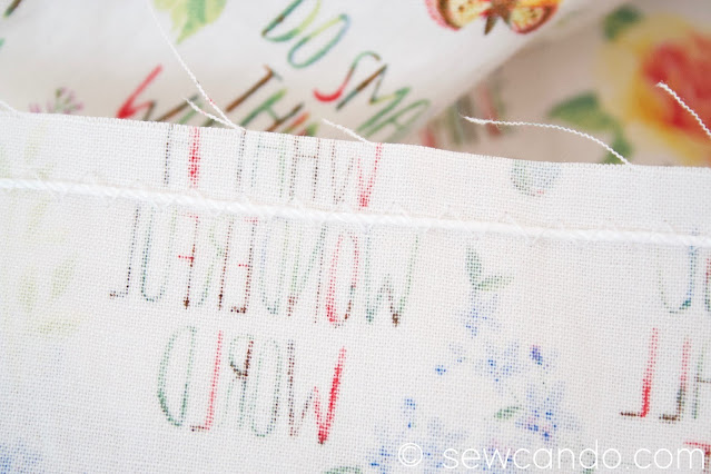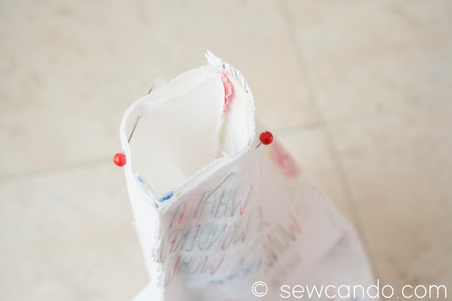 With right sides facing, pin the short sides of the skirt rectangles together and stitch. To easily gather the skirt, with fabric still turned wrong side out, use a wide and long zig-zag stitch and stitch along the top raw edge with the thin cording/string between the stitching.