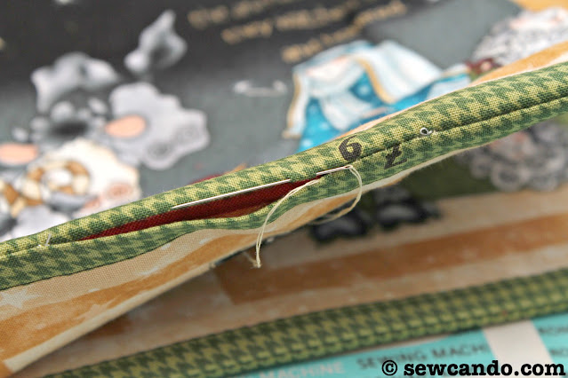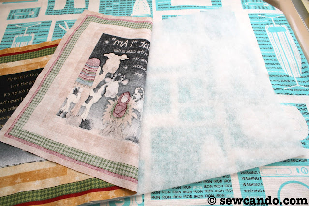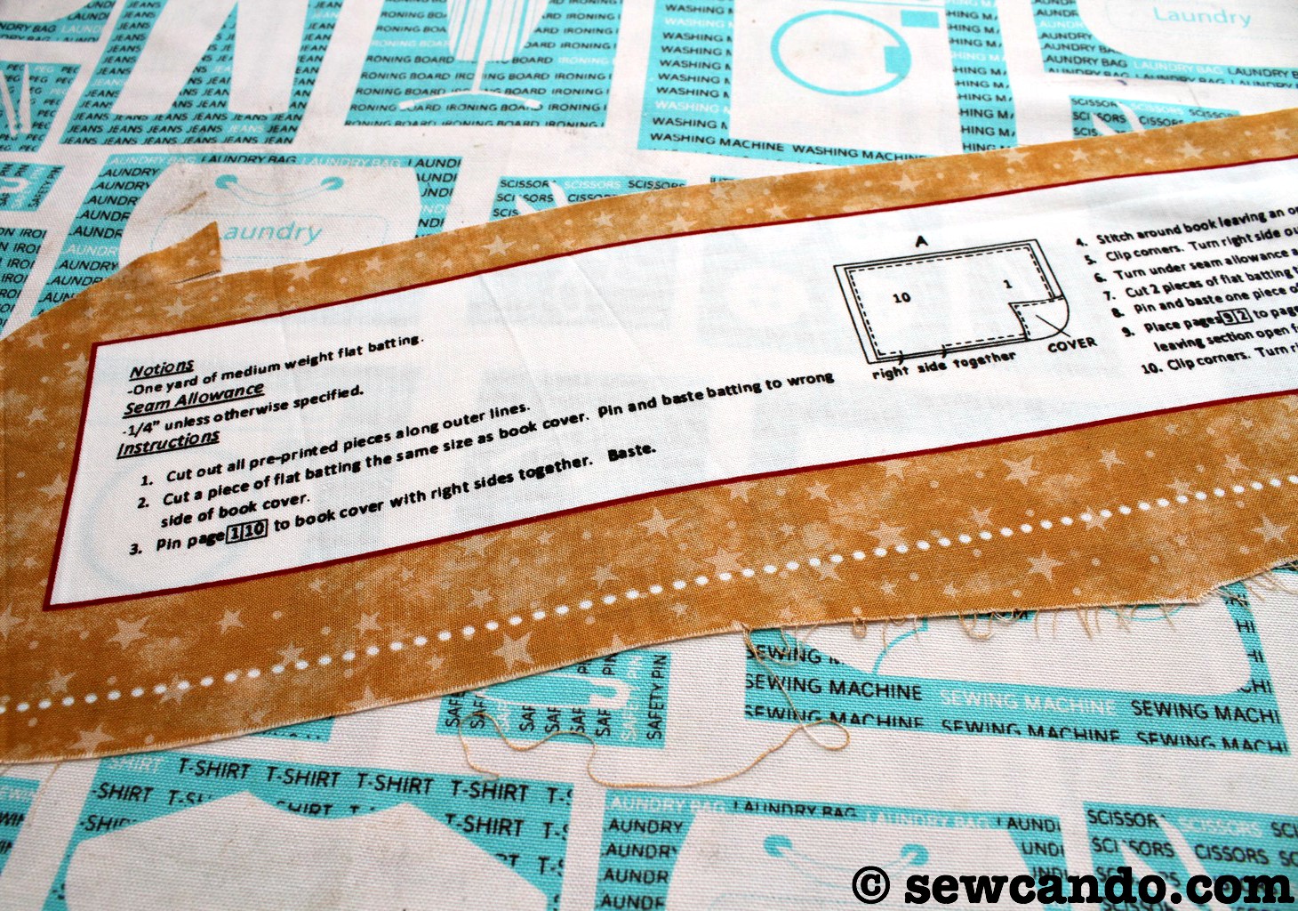 Thinner batting is also important - it makes it easier to keep the layers straight and corners crisper. And again, if the book is going to ever get washed, it's best to avoid 100% cotton batting, which will shrink up quite a bit.