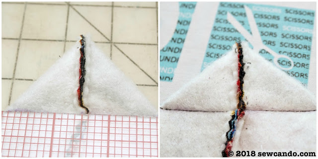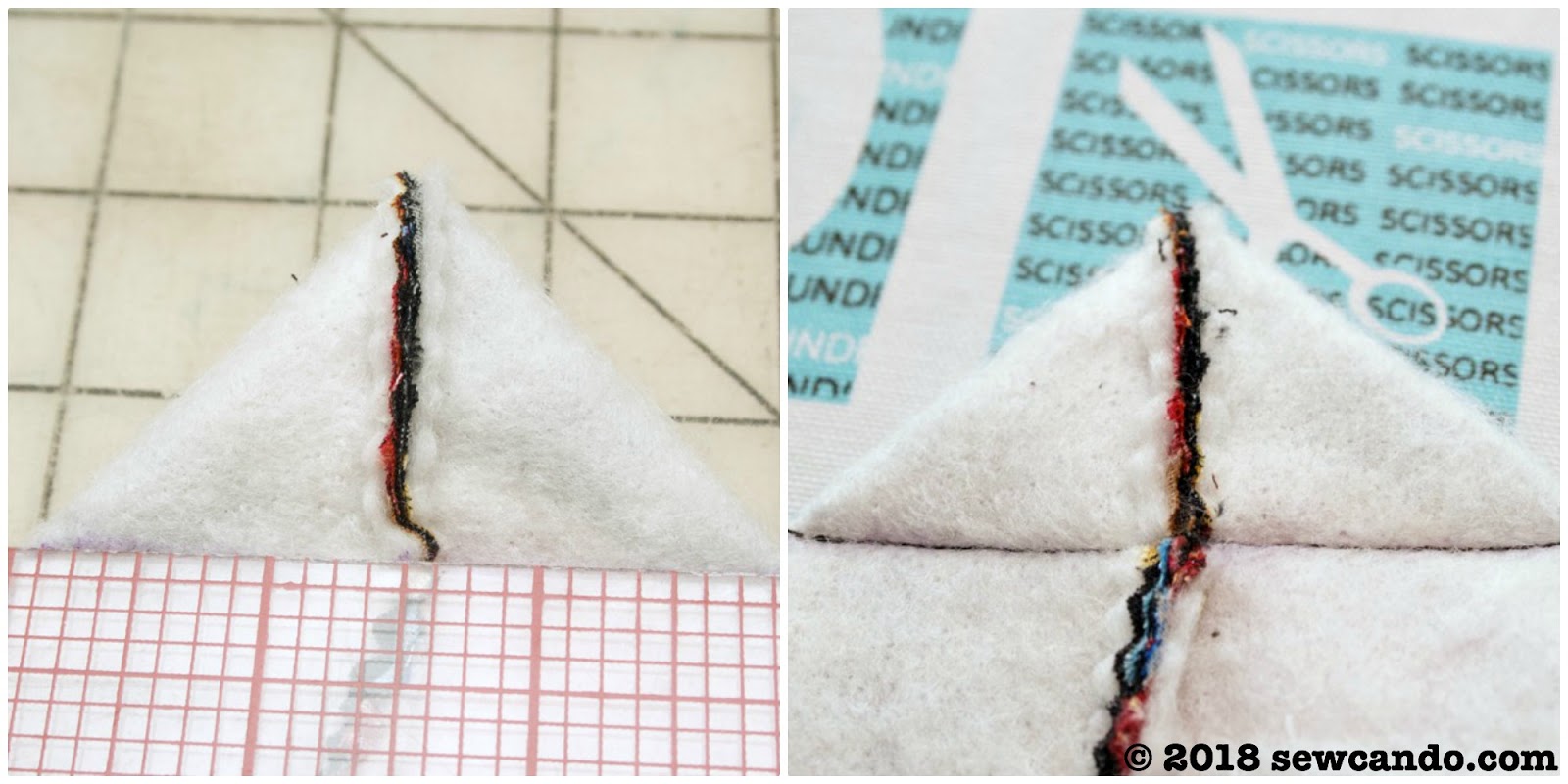 Square off the corners of the outer bag and lining by 3 inches and stitch: