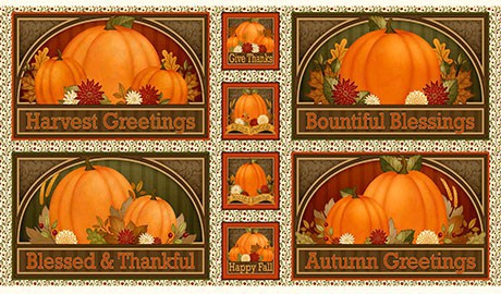 The panel is the Harvest Greetings Blessings Fabric Panel.