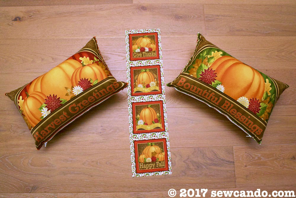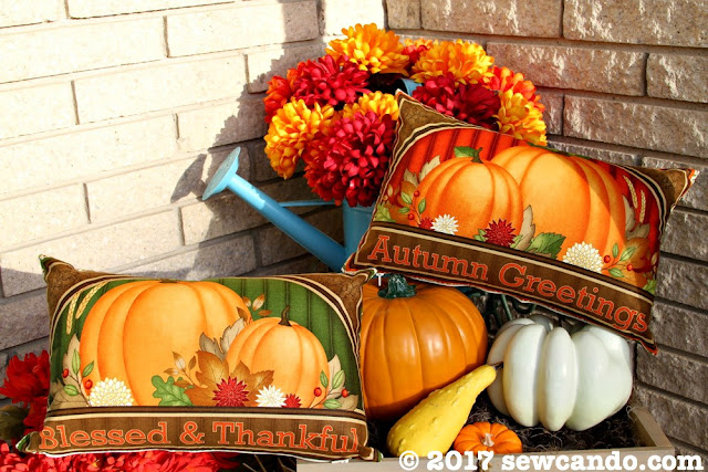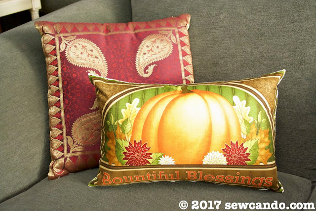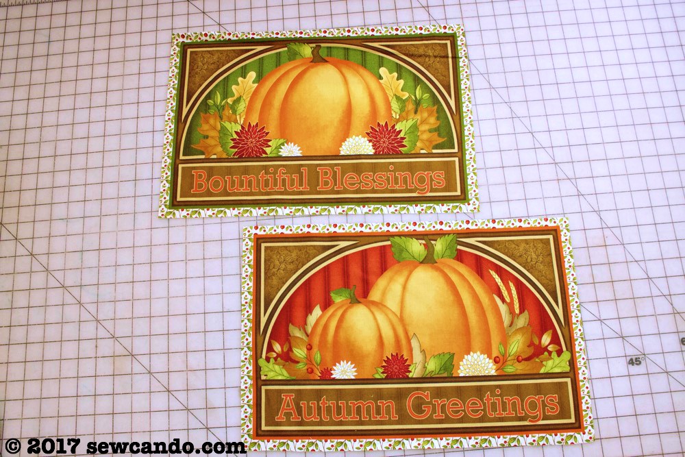 A single panel provides 8 pretty harvest-themed rectangles: 4 large and 4 small. Enough for the two reversible design pillows I'm sharing today and several smaller project possibilities. They're also perfectly sized for some DIY wall art, placemats, a Thanksgiving table runner or fall quilt.