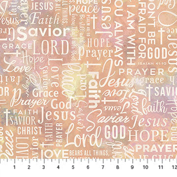 Beautiful inspirational words like Jesus, Savior, Faith, Hope, Peace, Prayer and Grace, as well as popular Psalm 46:10 and Isaiah 41:10 on a watercolor background with shades of peach, periwinkle blue and cream.