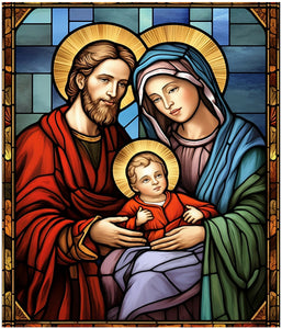 Stained Glass Holy Family Nativity Christmas Cotton Fat Quarter Panel