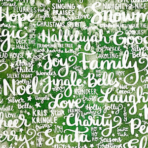 Comfort and Joy Holiday Feels Text & Words Green Cotton Fabric