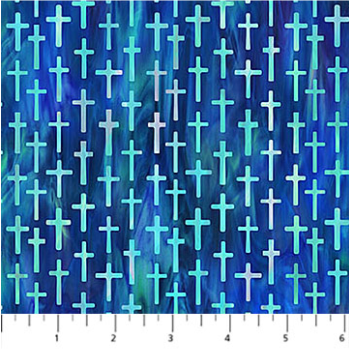 Beautiful stained glass background with small white crosses. Digitally printed for incredible realistic detail.
