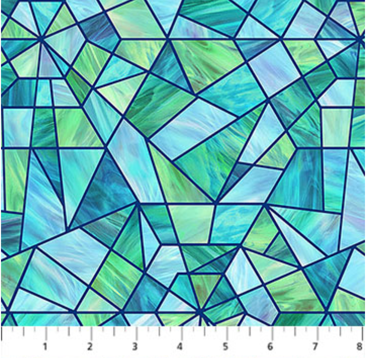 Risen Stained Glass Turquoise Multi Cotton Fabric