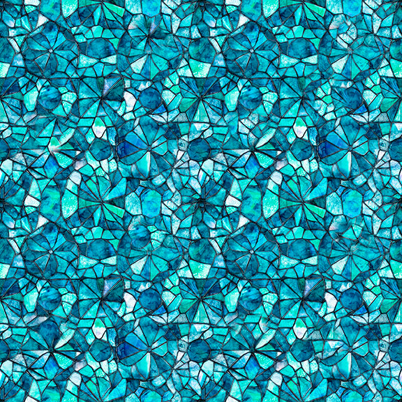 Mosaic Blooms Stained Glass Turquoise Blender Cotton Fabric
