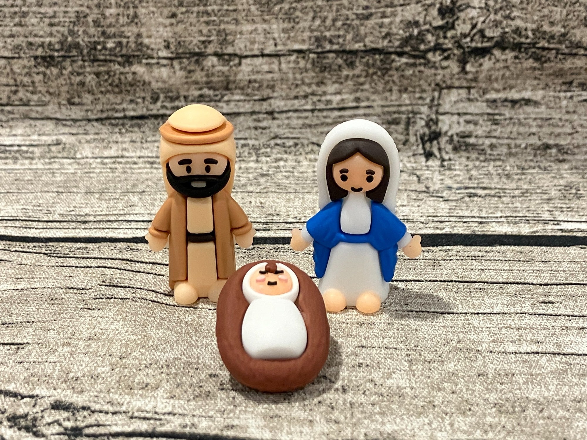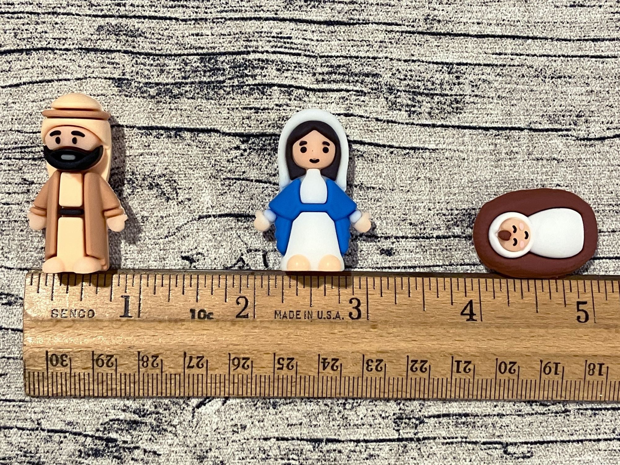 Joseph figure is 1.5in, Mary 1.3in, Baby Jesus 1in