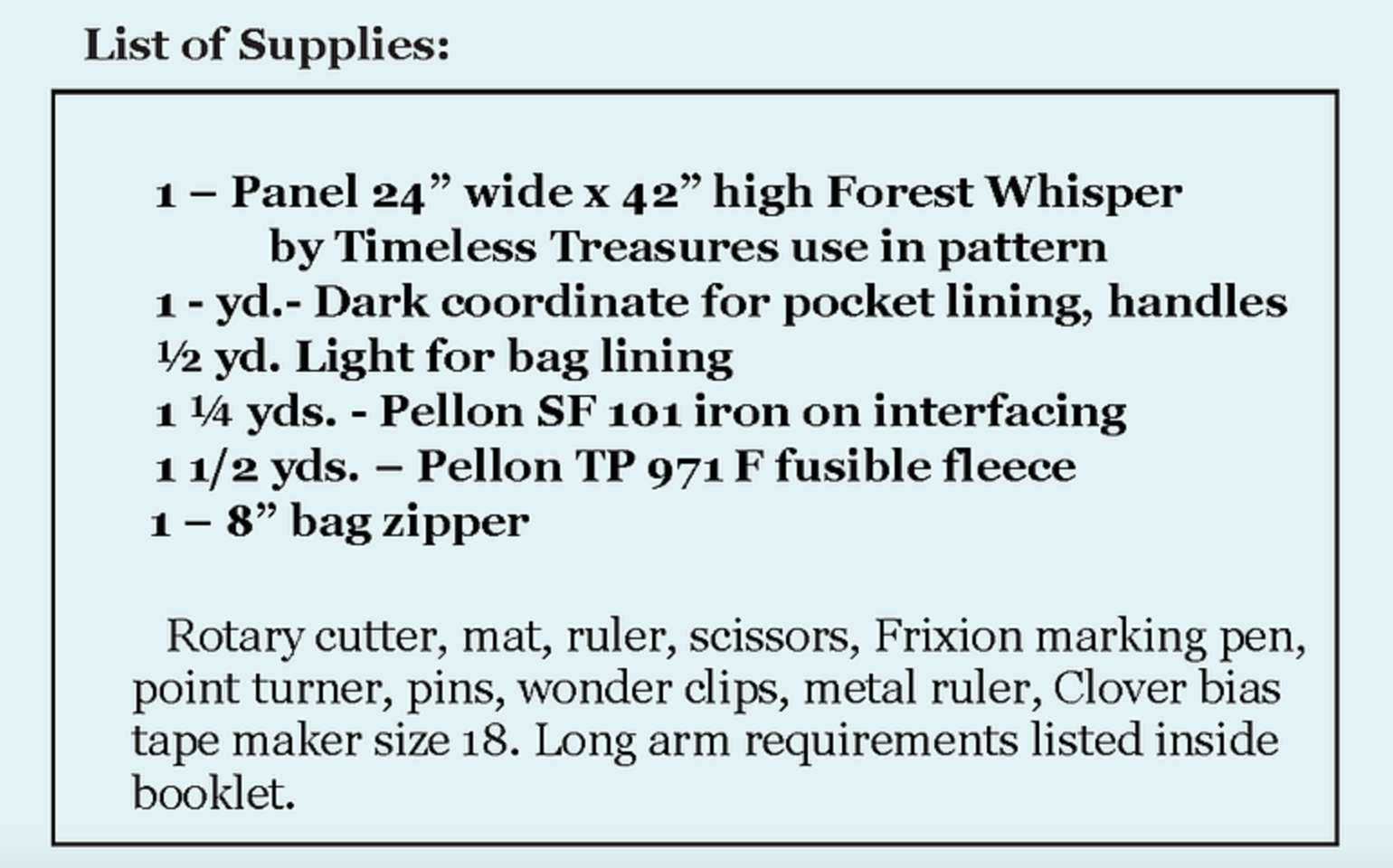 Create an eye-catching tote with your favorite panel. Roomy enough to hold your purse, lunch, notions, shoes, and more, the quilted pocket inside is the perfect size for patterns and magazines while out shop-hopping. Two handle options included.