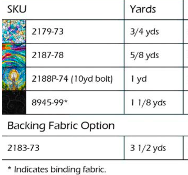 3.5 yds Backing Fabric & batting not included.  Find additional yardage in Faith In Full Color Fabric Collection and easy-match Blender Fabrics.