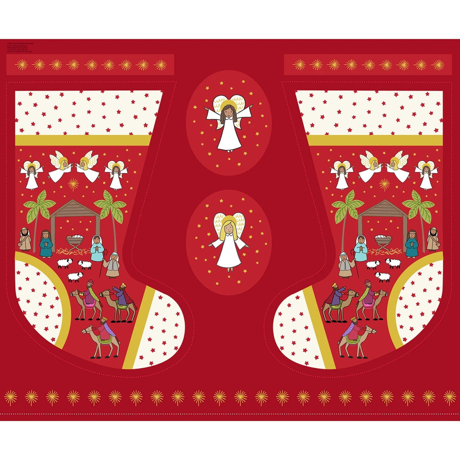 A host of angels, singing joy to the world over the Nativity scene in this jumbo stocking project panel with metallic gold highlights. Also includes extra angel ovals that can be a mini pillow, large ornament or decorations.