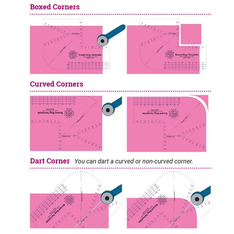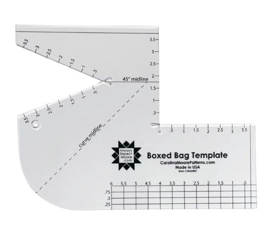 Make beautiful & unique fabric gift bags that can be used again and again with this fantastic set. The Boxed Bag Template is an acrylic tool that make it easier to make bags, pouches, boxes, and more out of fabric. The template has been designed to be used with a 45mm rotary cutter, to cut out boxed, curved and darted corners without fear of cutting too far. It also has a ruler to cut any zipper tabs or pulls.