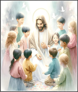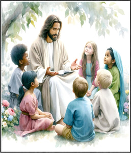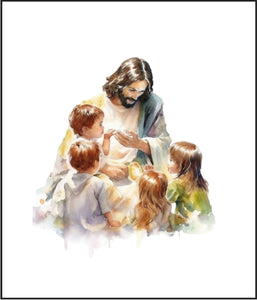 Jesus & The Little Children Watercolor Cotton Fat Quarter Panel