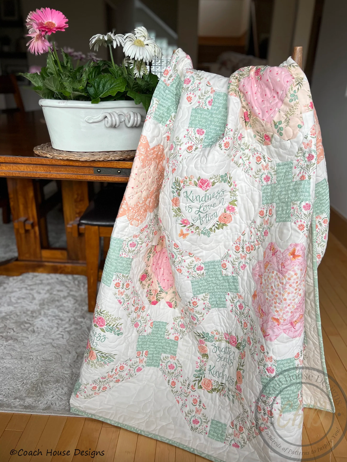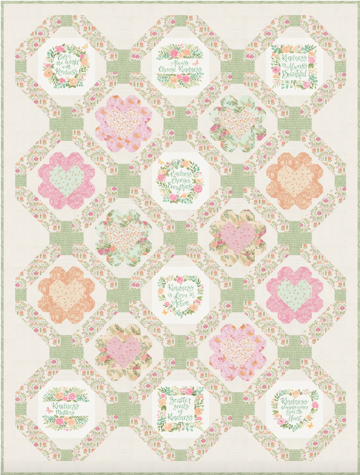 Flowing like a gentle chain of good deeds, the layout weaves together fabric panels and coordinating prints to create a visually striking, yet beginner-friendly design. Whether you're making it as a gift or to keep as a reminder of the kindness we all need more of, this quilt will bring beauty and meaning to any space.