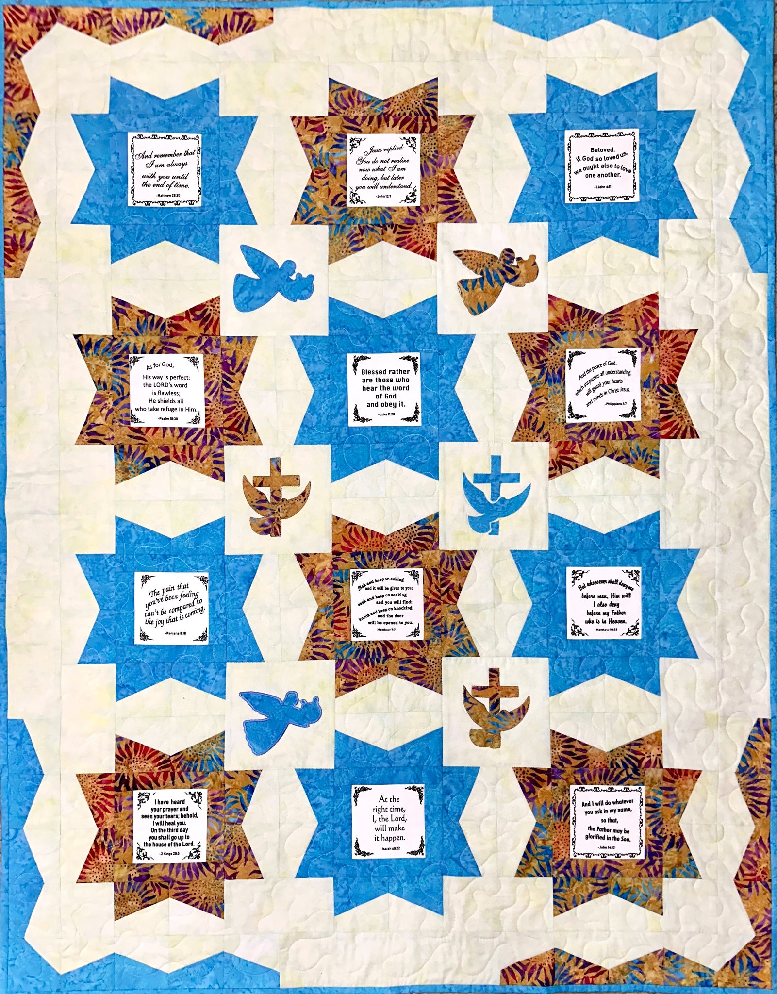 Beautiful lap or wall hanging quilt pattern and God's Words block fabric panel.