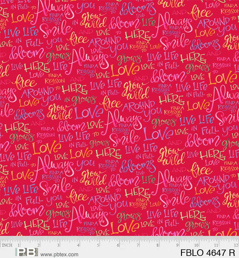 As the fabric says, "Always find a reason to smile!" This print from Courtney Morgenstern gives you the perfect reason! Fresh, happy and inspirational artwork created in clean, clear colors. With other phrases like "Live life in full" and "Love grows here" & more on a red background.