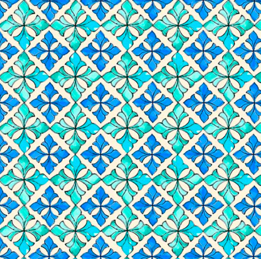 Vibrant multi colored tile block design is extremely versatile!