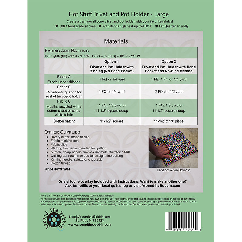 Create a custom designer silicone trivet-pot holder, featuring your favorite fabrics. Kit has detailed diagrams and step-by-step instructions to make a designer silicone trivet featuring fabric of your choice.